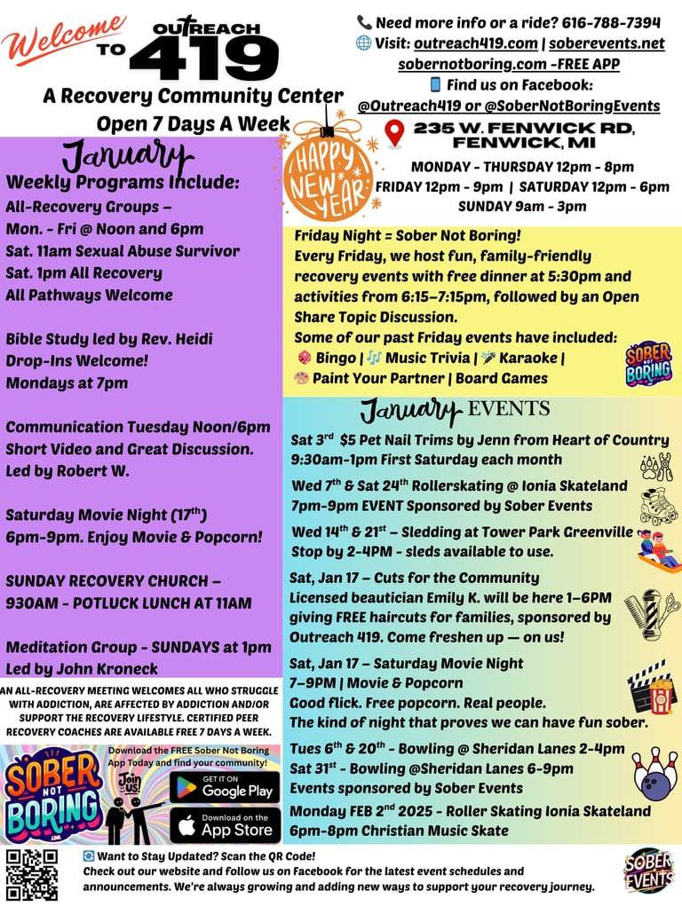 We’re honored to be featured by our local news station for the growing impact of Outreach 419 in Montcalm County. What began as Friday night dinners and board games has grown into a 7-day-a-week recovery hub—because healing doesn’t just happen in meetings, it happens in community.