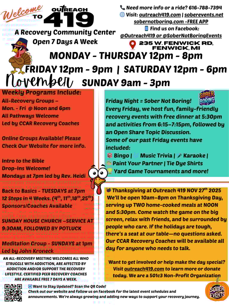 We’re honored to be featured by our local news station for the growing impact of Outreach 419 in Montcalm County. What began as Friday night dinners and board games has grown into a 7-day-a-week recovery hub—because healing doesn’t just happen in meetings, it happens in community.